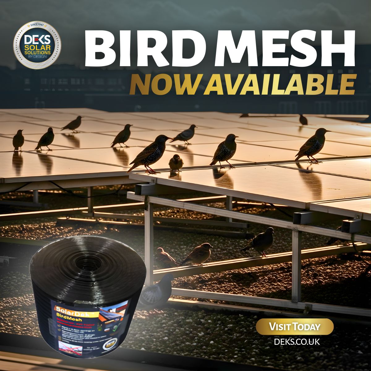 With solar panels becoming more common across the UK, our new SolarDek BirdMesh offers a simple, durable way to prevent bird damage, nesting and debris build-up.
