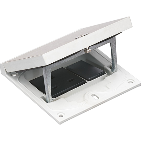 A 6mm Allen key lock prevents unauthorised access to the floor outlet. When in use, the lid is supported by a sprung metal pedestal bracket which holds the lid in a partially open position. Note when open the unit is only IP20 rated. The back box is supplied with drainage options. Fitting instructions should be fully followed. The outlet will also benefit from occassional cleaning to remove dirt and grime build up.