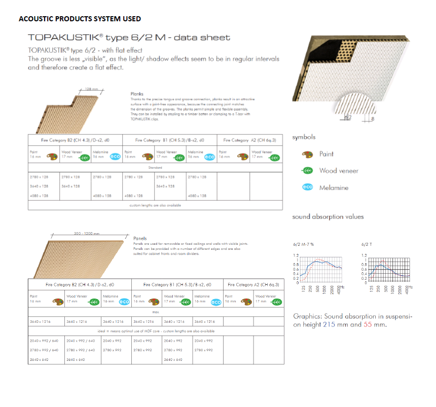 John Robertson Architects selected the Topakustik 6/2M (aw 0.85, Absorption Class B, NRC 0.91) and 6/2 Non Acoustic Panels; it is important when working with such a space that the reverberation is controlled and not completely taken away. Controlling the sound in this environment is complex to ensure speech intelligibility is transferred to all sections of the auditorium. Acoustic Products delivered two varying systems to assist the acoustic needs which aesthetically fit the auditorium and have the same visual appearance.