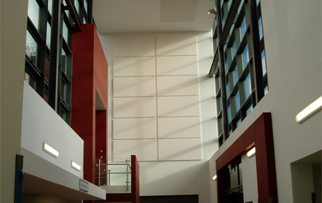 At Pinderfields, sub-contractor OCL Ltd installed 120,000m2 of dry lining and partitioning, using Knauf Drywall systems. A large proportion of this is the new 122mm wide 52dB partition which consists of a single layer of 15mm Knauf Soundshield on each side of a 92mm Knauf C Stud, with a layer of 100mm Knauf Crown Acoustic Partition Roll squeezed in the cavity.