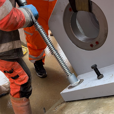 Working with bridge design specialists Roughan & O’Donovan (ROD) and project engineers Qualter Hall, the LIEBIG Ultraplus undercut anchor from EJOT UK was identified as the preferred solution for this high load application. A series of these mechanical anchors were installed in lengths of 1.09m and 1.45m with an M36 diameter after the hole preparation was completed by drilling specialists Core Cut.