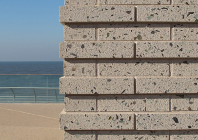 Lignacite's aim is to work alongside designers to create unique products that complement individual projects. This can include using the recycled aggregate from an existing building on a site, through to incorporating almost anything from natural sea shells to luminescent powder coated glass.