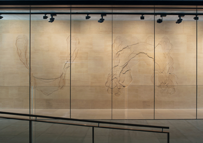 stoneCIRCLE manufactured a limestone frieze for the Sainsbury Laboratory, a plant research facility located in the Botanical Gardens of the University of Cambridge. Susanna Heron, an artist internationally renowned for her work with architects on site specific projects was asked to produce a piece for the Laboratory and chose to produce a frieze in Jaumont yellow limestone which is also used as part of the fabric of the building. The work is entitled Henslow's Walk after John Stevens Henslow who produced the university's collection of plant drawings which inspired the artist. It is composed of 104 stone panels ranging in size from 850mm x 750mm to 450mm x 400mm with abstract shapes based on Henslow's drawings traced into the limestone.