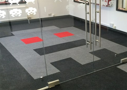 Geoff Youngs, Technical Director at LiveLink, wanted a Space Invaders theme to his office. He liked the idea of using the floor space to create an eye-catching design, which was possible due to the versatility of Supacord tiles.