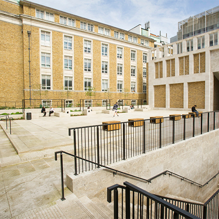 As part of UCL’s £1.2 billion refurbishment programme, main contractor Balfour Beatty was tasked with building a terrace next to the 19th Century Grade 1 listed Wilkins Building, providing a vital passage through the university’s Bloomsbury Campus while also serving as an outdoor events space.