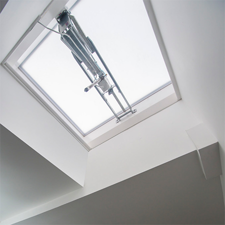 On this project the SHEV is a certified roof ventilator or Skylight and can be opened safely to allow roof access when required. Opening the SHEV ensures that the stairs are kept free from any smoke as the fans system continues to work to clear smoke laden air.