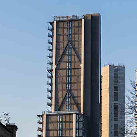 Our anodised Mesh.covering is 100% non-combustible, achieving an A1 accreditation based on testing to standard EN 13501-1:2019. It is made of solid aluminium, does not release any toxic gases or create any fumes. Our Mesh.covering is also produced with pure aluminium alloy and is 100% recyclable.