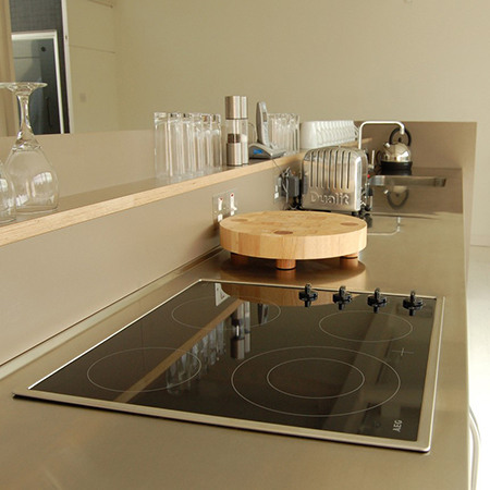 Bespoke manufacturer Woodbury Furniture Company was commissioned to build the kitchen-bar, with a stainless steel worktop specified by the architect. Woodbury designer Matthew King says: “We approached GEC Anderson for the worktop as we had worked with them on several previous commissions. They offer a wide choice of edge details and upstands, and can be relied on for seamless joins and a perfect fit.” The worktop was supplied in two sections to facilitate handling into the boardroom – via a spiral staircase. The sections were mounted on top of storage units and appliances and were clamp-jointed on site to provide a virtually seamless finish. A cut-out to accommodate a glass-top hob was provided, along with an integral 500mm x 400mm sink from GEC Anderson’s standard range. Melissa Richardson says: