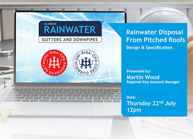 Rainwater Disposal from Pitched Roofs - Design & Specification is the next topic for the ongoing Alumasc Water Management Solutions webinar series round two.