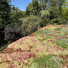 A Sea Hardened lightweight sustainable extensive sedum roof build-up. Made up from a Roof protection layer, 50mm substrate with natural drainage layer added, 25mm sea hardened sedum blanket.