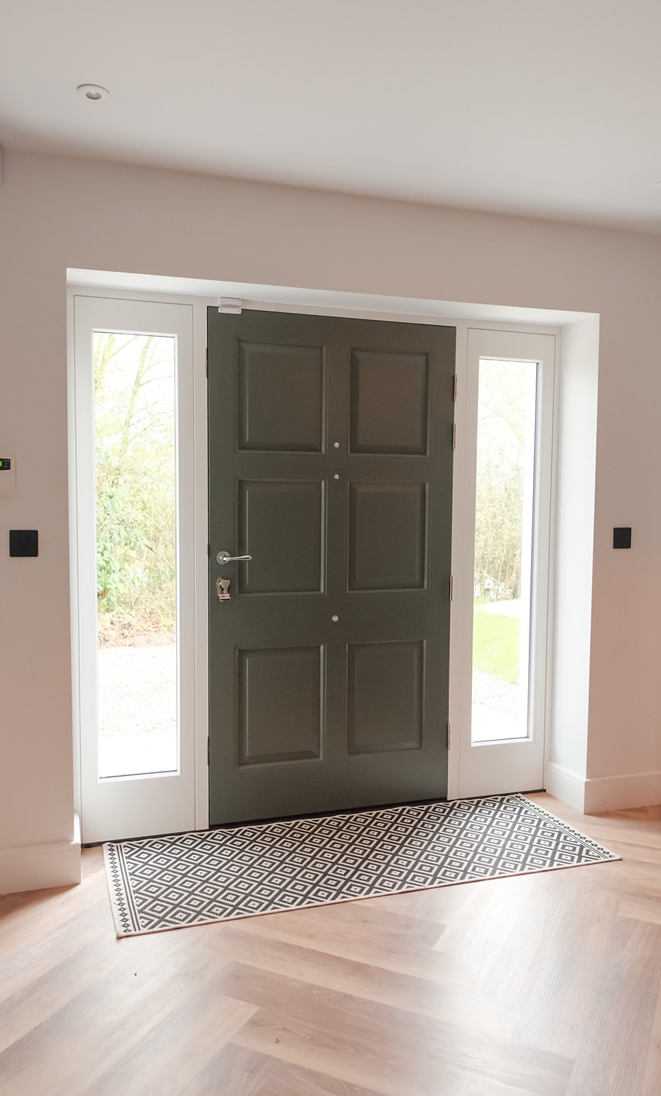 They also chose an elegant, hand-made timber entrance door featuring fully glazed sidelights, ensuring their hallway was always flooded with light.