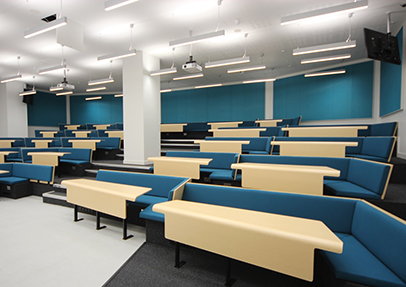 The seating format is specifically designed so that the students can work and collaborate together during the teaching/lecture sessions. CPS designed the new bench specially for the project and also the curved desking design was a new concept for the university, and the installation is now one of their most prestigious lecture theatres.