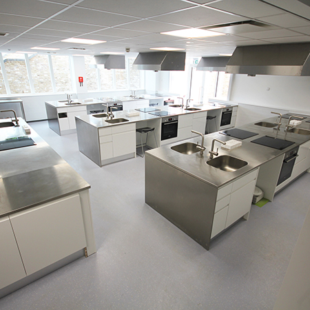 GEC Anderson have provided their custom design and manufactured stainless steel sinks, worktops and splashbacks for Tudor Hall School in Wykham Park.