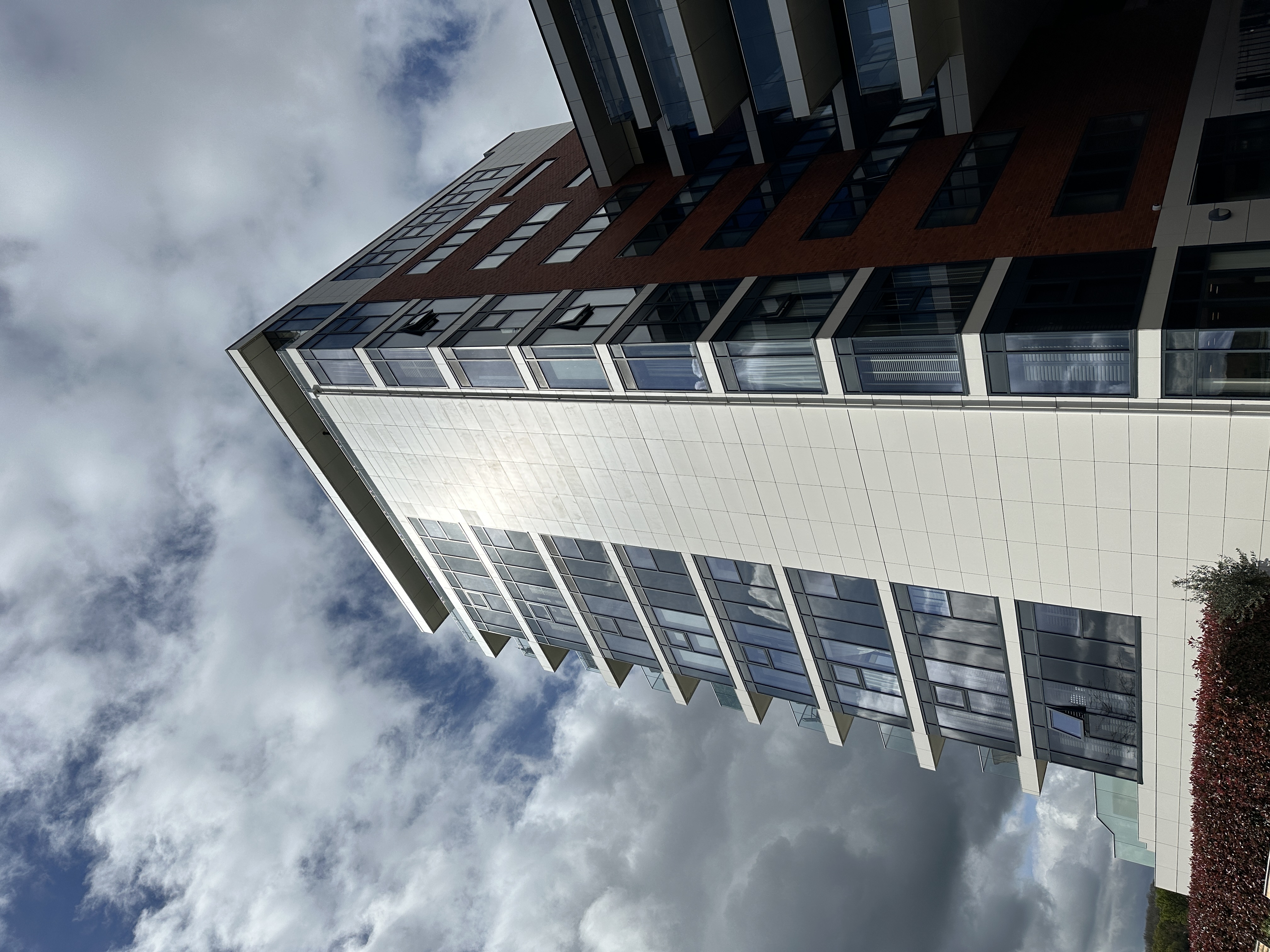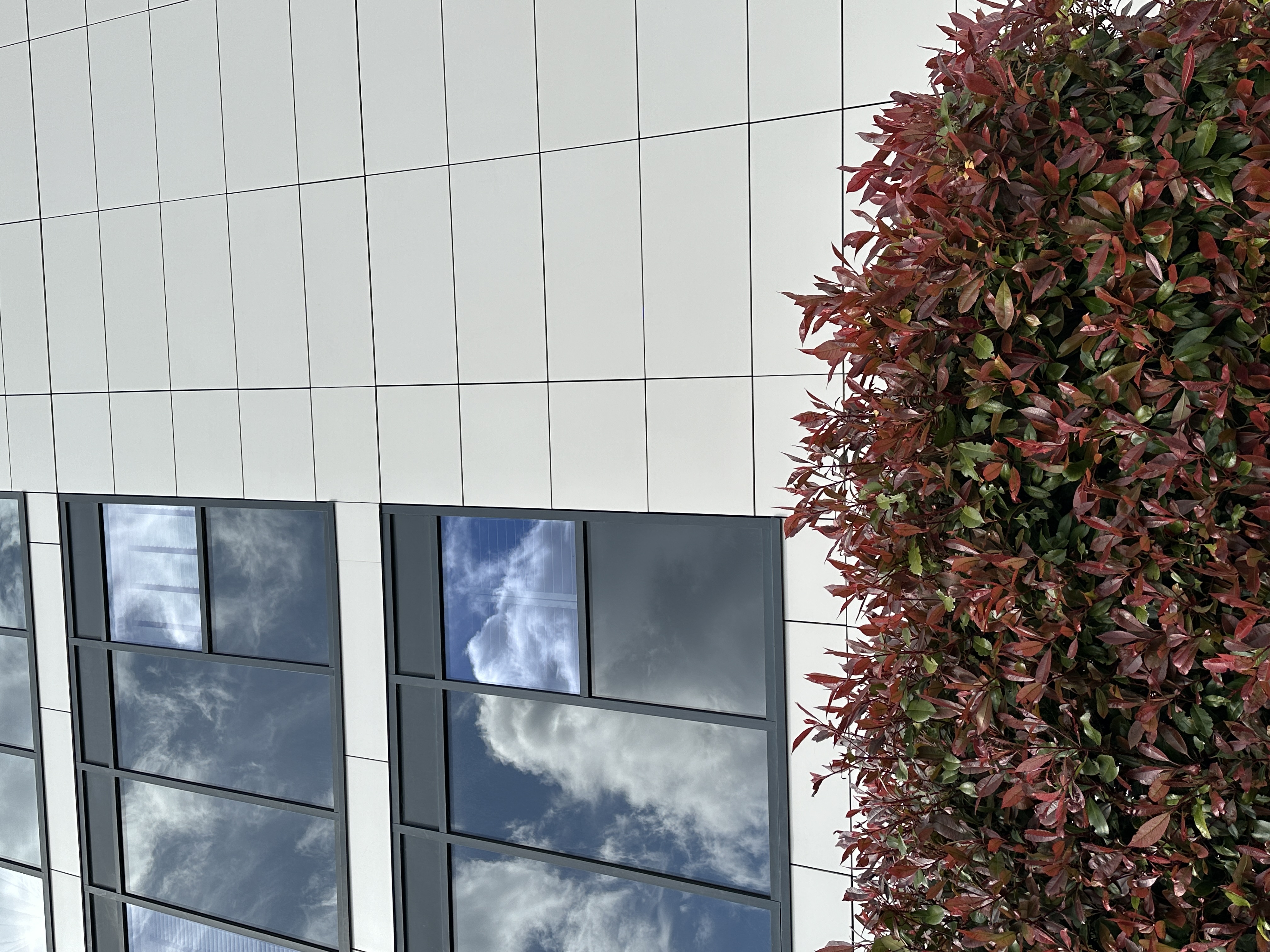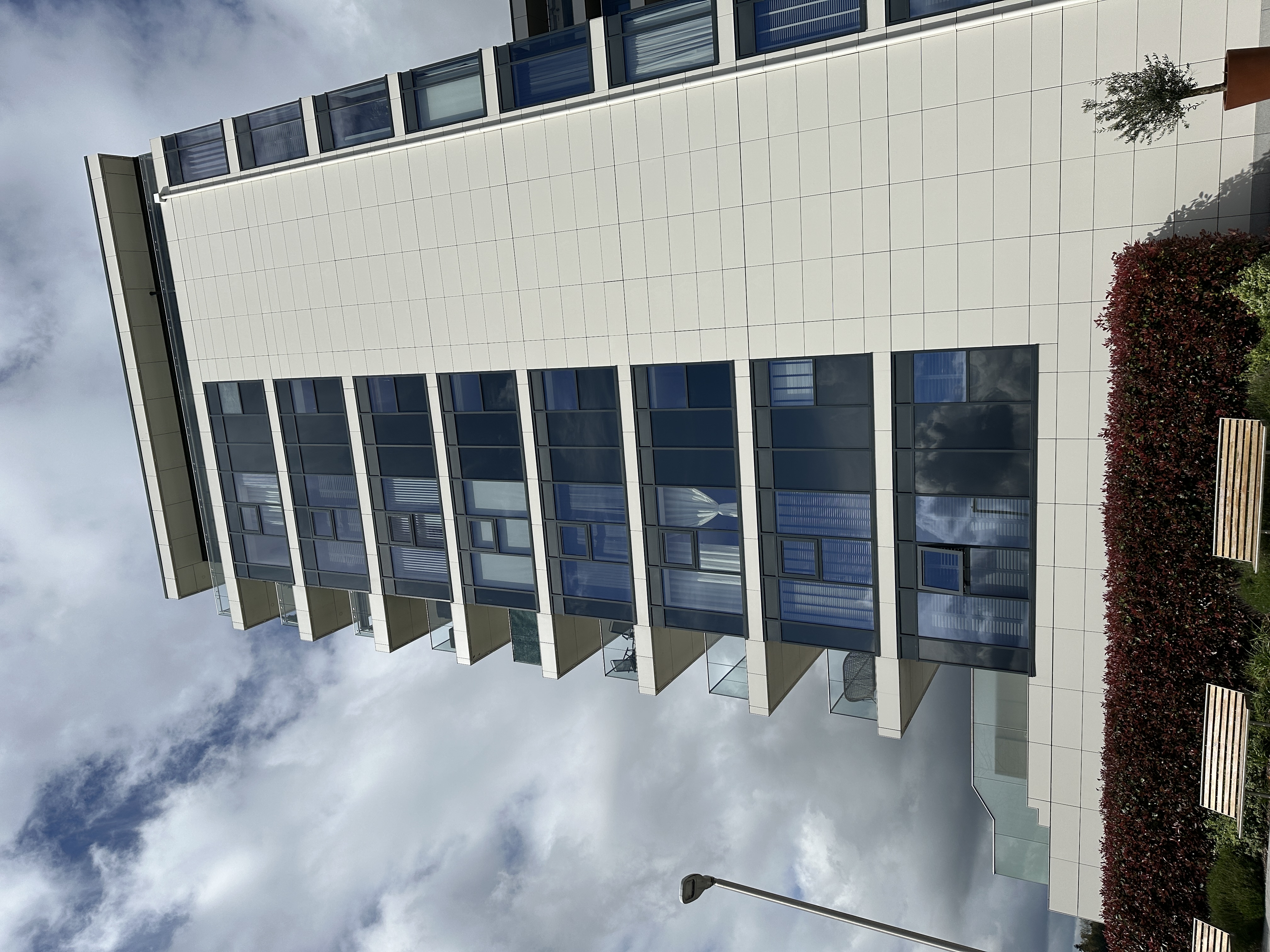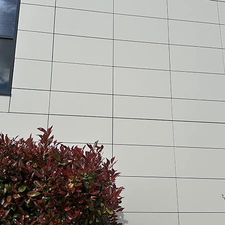 Working closely with the installer UK Facades, we proposed a bespoke system of bright white ceramic tiles with self-cleaning properties, to mitigate the long-term effects of air pollution in this prominent, central location within the town. Specifying and sourcing this leading technology required collaboration between teams in the UK, Spain, Japan and Italy – managed by Aliva UK. Accommodating the building’s complex shape into our designs involved three months of detailed planning; configuring more than 100 unique tile sizes and shapes around bespoke external features, including balcony fins and balcony fascia – all without compromising the advantages offered by the ALI-S system in terms of installation and maintenance.