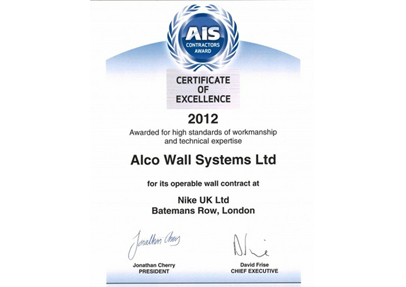 At the recent AIS Contractors Awards, Accordial Wall Systems were awarded the Certificate of Excellence Award for its work at the Nike 1948 showroom in Batemans Row, London.