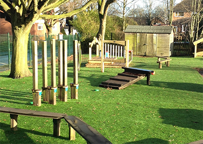 Using Play 365, which has been specifically designed by Nomow for areas being used by children such as schools and nurseries or public childrens play area, Nomow provided the initial site survey and plans for the installation, carrying out all work to the highest specification. The total area of artificial grass now covers over 900m2, working around paths, trees and play equipment and giving the children at Four Oaks a beautiful green play area that can be used 365 days a year.