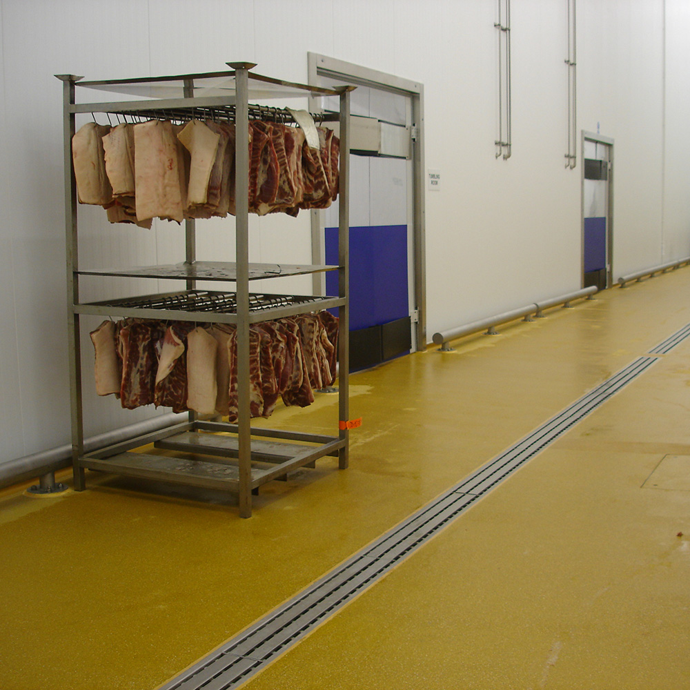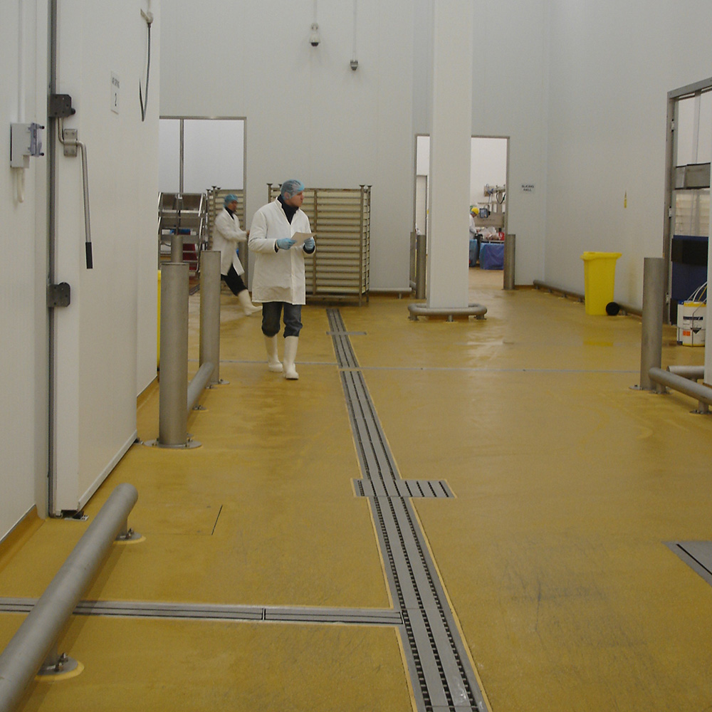 In processing environments where greasy food, oils and chemical are present with the potential of spillages, a high grade non-slip floor will be recommended.