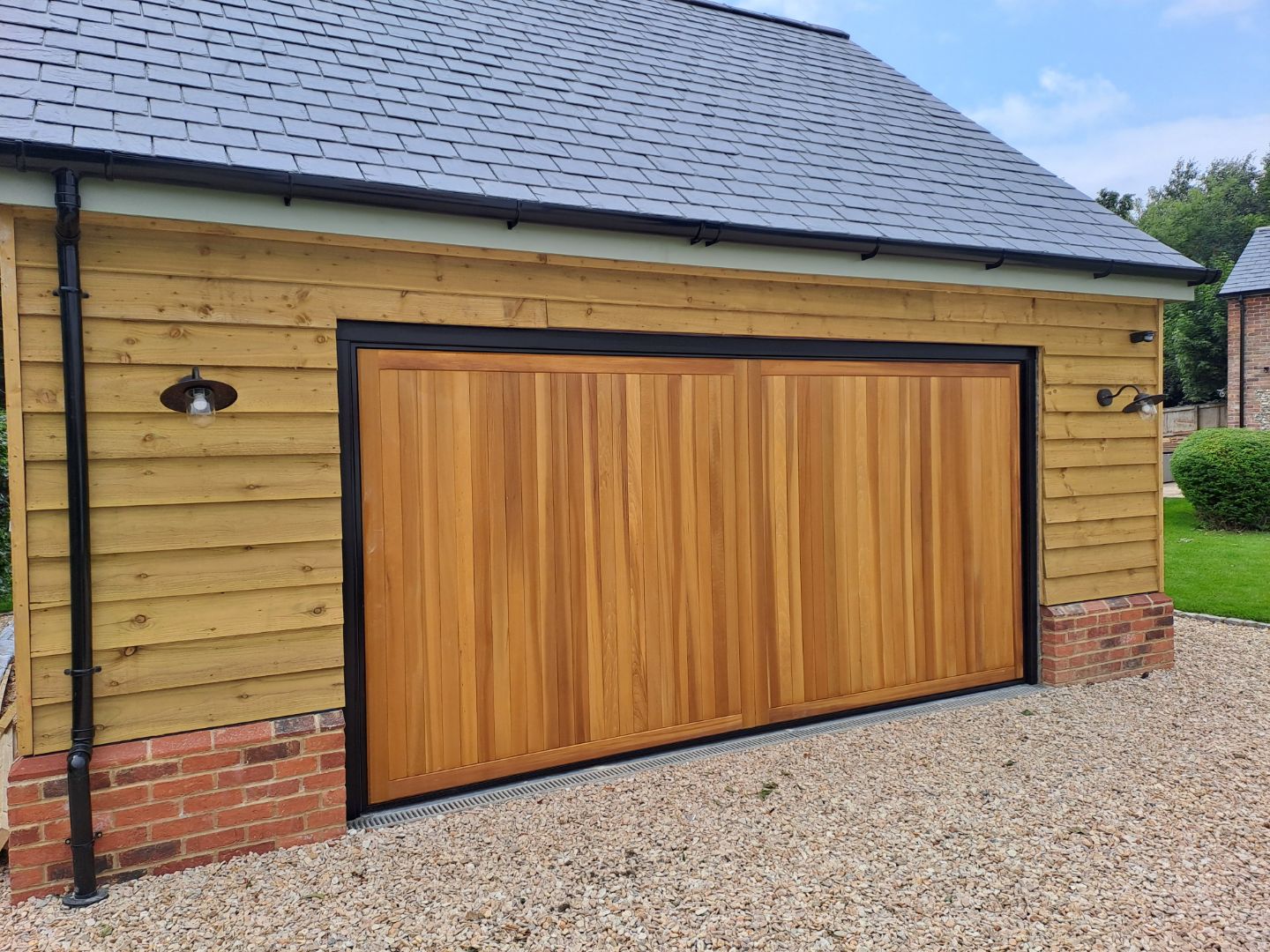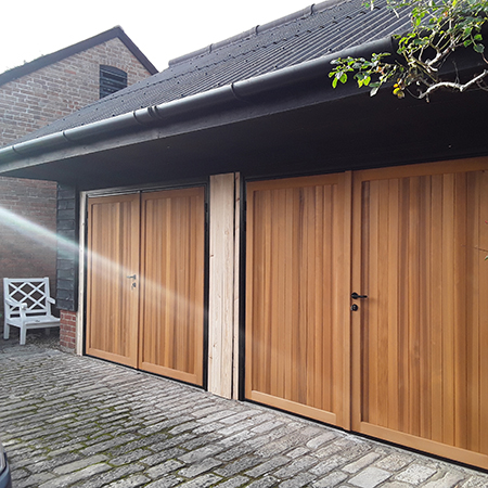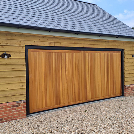 Manufactured from the finest grade of Kiln Dried Western Red Cedar, each door is constructed to deliver long-term performance and visual impact, proven over many years of door manufacturing. The result is a product that not only complements the architectural character of the property but also meets the durability demands of trade professionals and their clients. Our Timber door range is available in made to measure sizes across our Canopy, Retractable (single and double sized) Up-and-Over doors and Side Hinged doors. Cedar panels are attached to a steel chassis which then uses the same lifting gear and hardware as the steel door range.