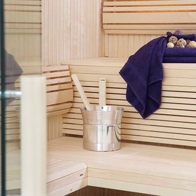 Dröm UK worked closely with Danesfield Homes to develop the sauna and steam room and choose appropriate finishes to ensure that they blend in to form an integral part of the pool house design. Measuring 2.4 x 2.2m, the sauna walls are lined with narrow profile aspen wood. The same timber forms both the high and low level benches, together with the back rests which incorporate low voltage lighting to create an inviting and relaxing ambience. Both the powerful heater and the lighting are digitally controlled.