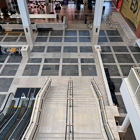 This outstanding performance is no accident. Albion Stone’s Portland Stone is celebrated for its strength and ability to maintain a refined finish in high traffic environments. The Library’s floors have endured constant footfall, wheeled luggage, environmental changes and daily operational pressures, yet they still look exceptional more than 25 years later.