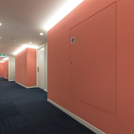 As part of the construction process, which was managed by John Paul Construction, 226 Profab Access 4000 Series Riser Doors were specified for installation by AE Doors throughout every part of the building, including the communal areas and individual bedrooms.