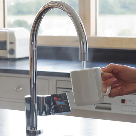 Quatreau TouchTap™ is the most stylish and technologically advanced multifunction tap on the market. Its touchscreen control panel dispenses boiling, chilled, sparkling, hot and cold filtered water as standard, with several built-in safety features and thermostatically controlled temperatures. The complete kitchen tap, Quatreau TouchTap™ assists with food and drink preparation, hand and dishwashing and eliminates the kettle and plastic bottled water.