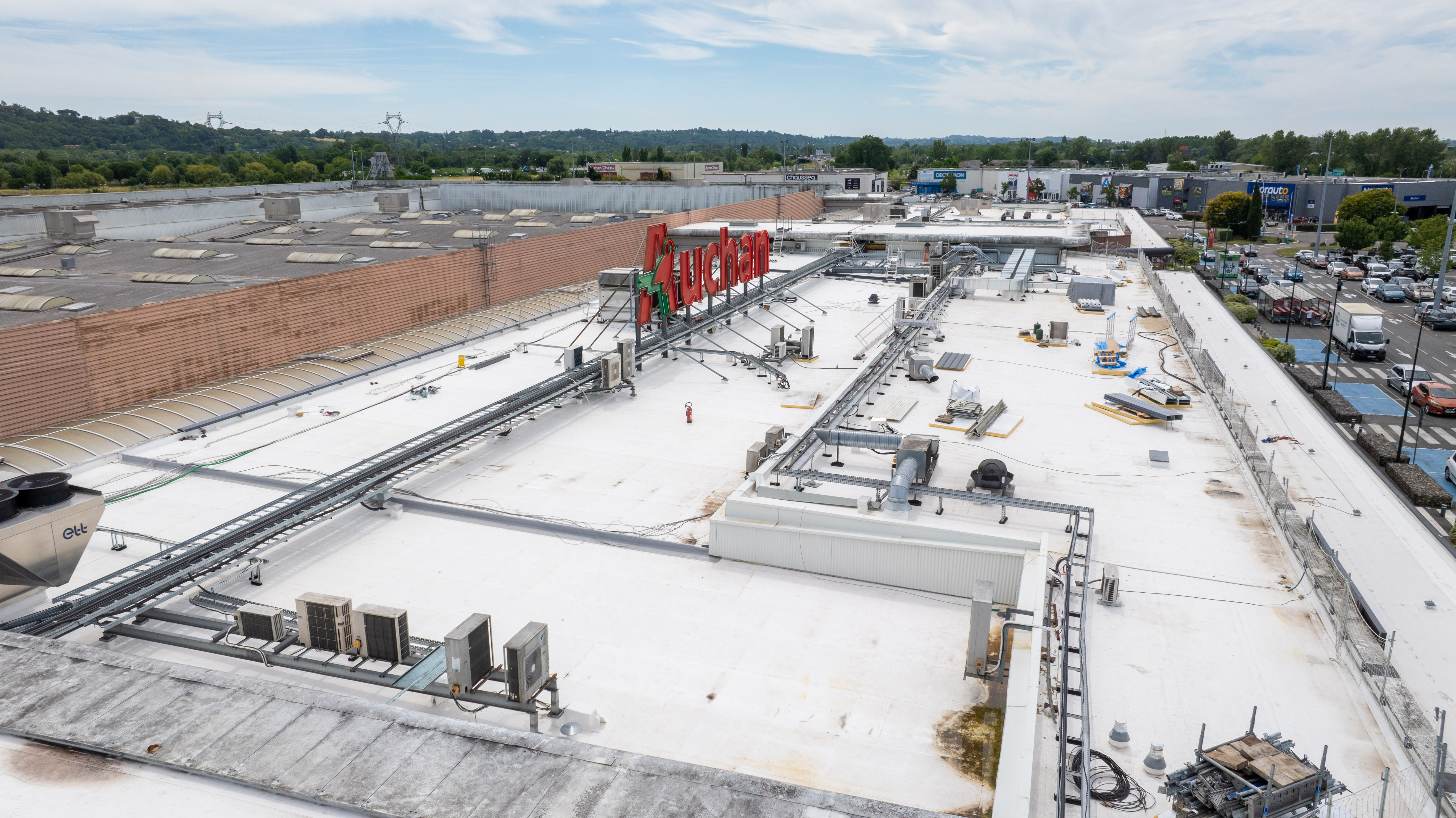 The Auchan Shopping Centre, a pivotal hub in Bordeaux, faced the pressing need to replace its aging bitumen roofing. Initially installed in sections dating back to 1995 and 2009, the old roof was no longer meeting modern standards of efficiency and sustainability