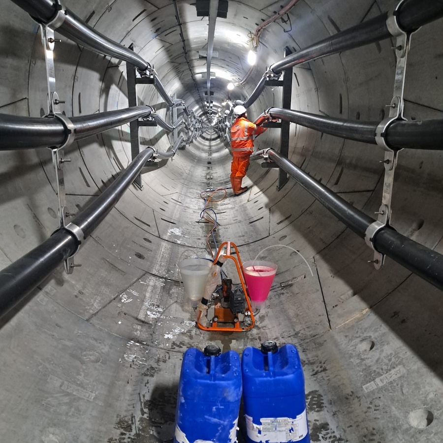 At a depth varying between 10m and 63m below street level, the tunnel also required the construction of multiple vertical access shafts along the route. These ranged from 9m to 15m in diameter and up to 55m deep, allowing the specialist team from ASF Waterproofing to safely access the tunnels and carry out the resin injection waterproofing.