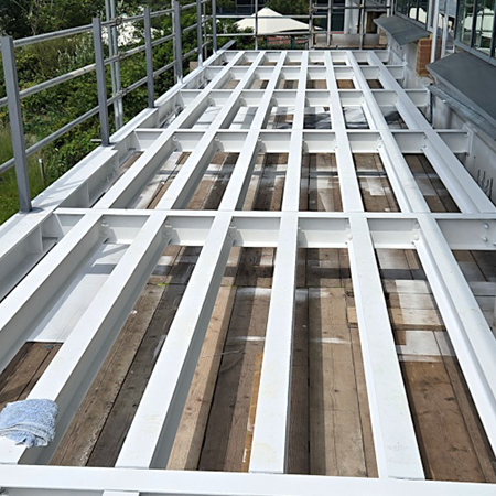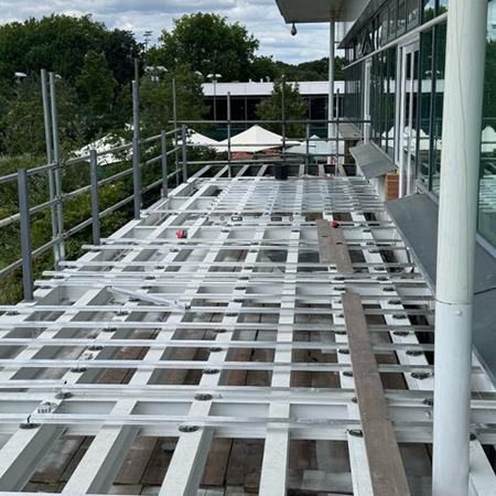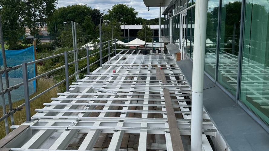 As part of a wider programme of improvements, the Roehampton Club commissioned the construction of a new first-floor terrace overlooking its gardens and golf course. The newly built 275 sqm structure extended the existing building with a cantilevered steel frame to create a larger outdoor space for members. Wallbarn was engaged to supply a complete Class A fire-rated decking system, providing the technical assurance and aesthetic quality required for a high-profile private club.