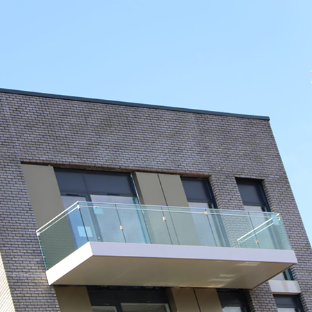 Queenshurst, at the former Kingston Gas Works site, had a unique stone effect band that wrapped around the building. This band needed to look like actual stone to compliment the facade and total building envelope. This project included a range of projecting and inset balconies, as well as some corner balconies. The majority of the balconies had frameless glass balustrades, all except one elevation which included gold coloured solid side panels.