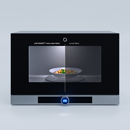 The innovative mesh structure SCHOTT® micro clear fabric enables an almost transparent door for microwave appliances.