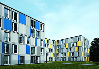 The "Heidelberg Student Living" project showcases the energy efficiency and economic performance of an innovative form of the modular system for buildings with a timber structure, developed by LiWooD AG in Munich. The combination of an energy-efficient building envelope, air/water heat pumps and a high-performance PV installation reduces the costs for heating and hot water to practically nothing. The Schüco Alu Inside system windows, which are energy-saving windows to passive house standard with triple glazing and integrated window rebate ventilation, played a key role in the concept and design of the building envelope.