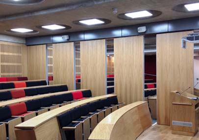 Accordial Wall Systems provided two EasiWall semi-automatic movable walls and two WallSlide straight sliding doors for the new lecture theatre at China Centre Building at Dickson Poon University Oxford.