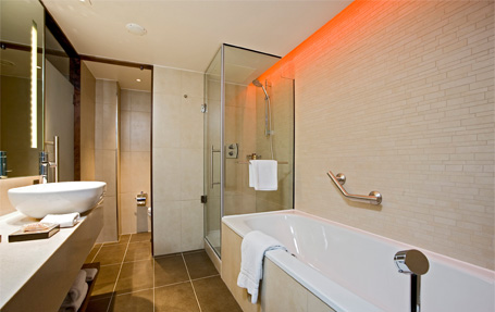 Knauf Aquapanel Interior is being used extensively as part of the multi-million pound refurbishment of a five-star Scottish hotel nestling in the shadow of the historical Edinburgh Castle. The market-leading glass fibre reinforced cement, tile backer board is being used to line the walls of 269 luxury bathrooms at the Sheraton Grand Hotel and Spa, where its immense strength will ensure that heavy opulent tiling stays firmly in place even in the wettest conditions.