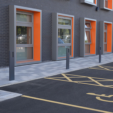 Big Harris Benches, Word Bollards and Box Litter Bins were specified for the site. There were also bespoke signage plates incorporated into some of the bollards to identify disabled parking bays.