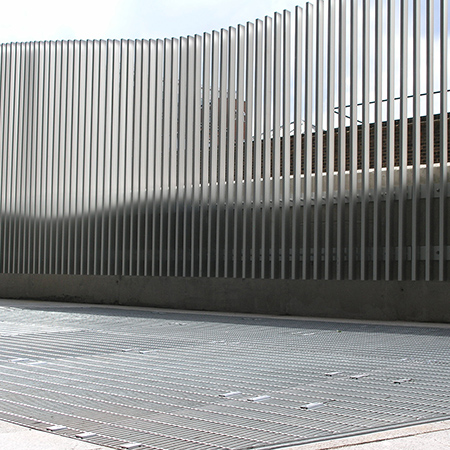 An additional 42m2 of pressure locked, heel-proof grating with a 44x11mm mesh was supplied as the most appropriate grating for the adjacent pedestrian area with a 50x2mm bearing bar.