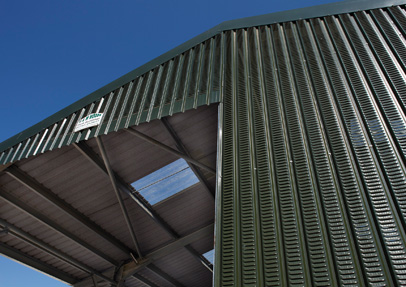 The absorbent qualities of the fleece-lined roof panels provide an effective solution to problems caused by condensation, which creates dampness in buildings and rust and rot to fittings. Drain Dripstop prevents this by draining moisture from the underside of the roof to the gutter, improving the internal environment. AS24 Ventair wall cladding allows increased airflow within the building and prevents gas from the livestock accumulating by dispelling it through the louvers on both sides of the sheet.