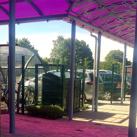 Working with Kier and architect Carissa Andrew-Smith, Broxap designers were able to recreate intricate petal shapes within the roof of the new walkway which was then clad in calming violet PETG sourced by our purchasing team.
