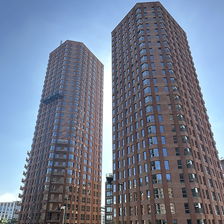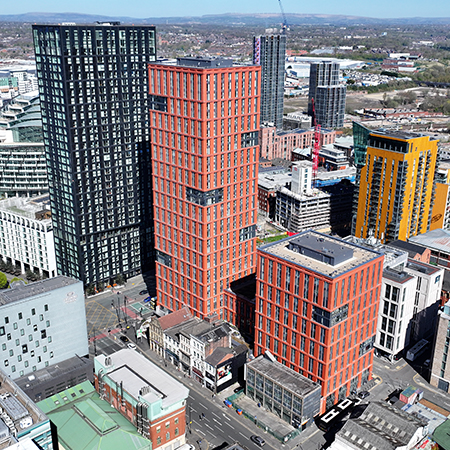 • Leeds II features a small palette of brick slip colourways that have created maximum impact and style, with verticality of piers that guide the eye from ground to crown, up to the Leeds city skyline.