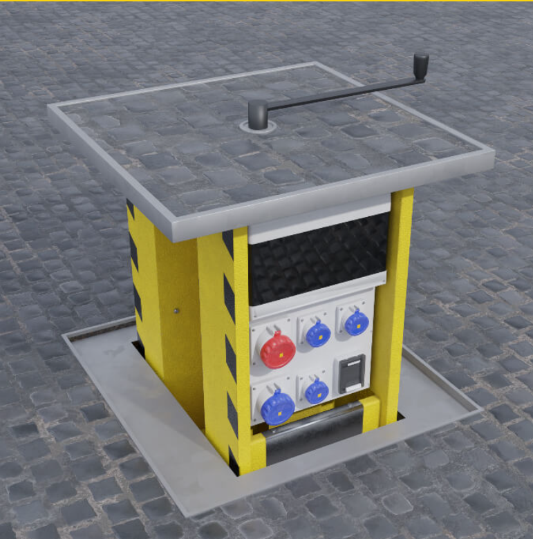 The pop-up nature of our units allows stallholders and event organisers to access electricity when needed—without permanent installations cluttering the space. Whether for a weekend market, a festival stage, or a late-night comedy performance, these discrete power units offer flexibility with minimal visual impact.