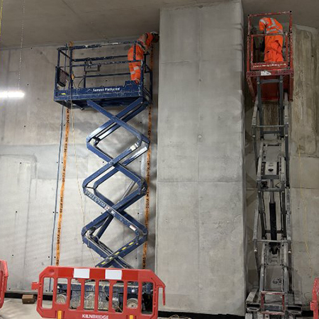 The principles of the Type C cavity drain system were straightforward and typical for a multi-level basement. The double-height design of Level B2 required precise installation of the Delta MS 500 membranes using mobile access equipment. TSM operatives followed strict safety protocols to maintain productivity and ensure safety.