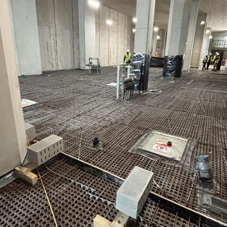 The installation of the Type C system posed project-specific challenges. These included installing membranes at high-level in the double-height B2 basement, handling structural complexities with multiple interfaces, and managing a tight schedule to avoid disrupting other trades. Additionally, the client required a solution for long-term maintainability, allowing future drainage access without impacting the building operations.