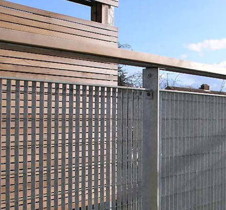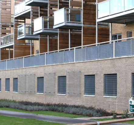 Orsogril UK was asked to supply 148 framed panels for fixing into the balcony balustrade. The Potissimum grating with a 34 x 100mm aperture was specified to comply with the National House Building Councils guidelines for anti-climb balustrades of <35mm width mesh.