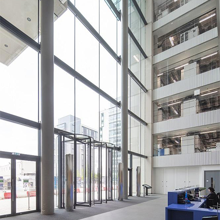 Saint-Gobain Glass has been used to create a range of glazed featured within the building including an impressive bolt-fixed facade and glazing that features complex screen printing.