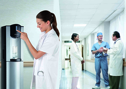 From workplaces to schools, microbiological pollution can occur naturally in normal water coolers, and for hygienically sensitive areas such as hospitals, this poses an obvious problem. When the Hygiene Solution drinking water system is implemented, bacteria growth around the dispenser nozzle is eradicated without manual intervention or the use of chemicals; instead, the patented thermal germ barrier heats up automatically at regular intervals, therefore thermally disinfecting the dispenser which maintains the neutrality of perfectly filtered drinking water from a Vivreau system.