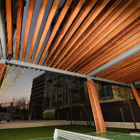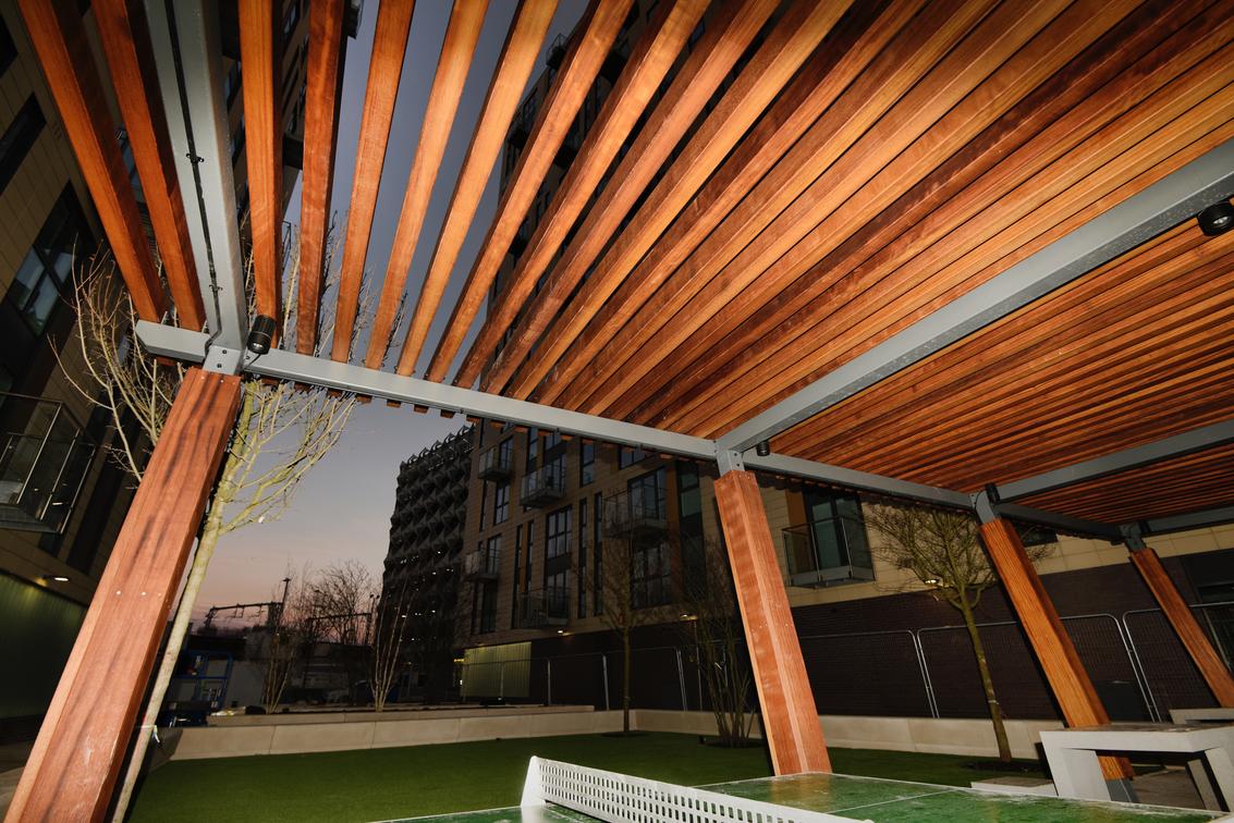 Working alongside Morgan Sindall Construction, at the prestigious New Bailey development in Salford, Broxap has created a bespoke mild steel and hardwood timber canopy, giving residents and visitors the chance to take advantage of sophisticated courtyard seating.