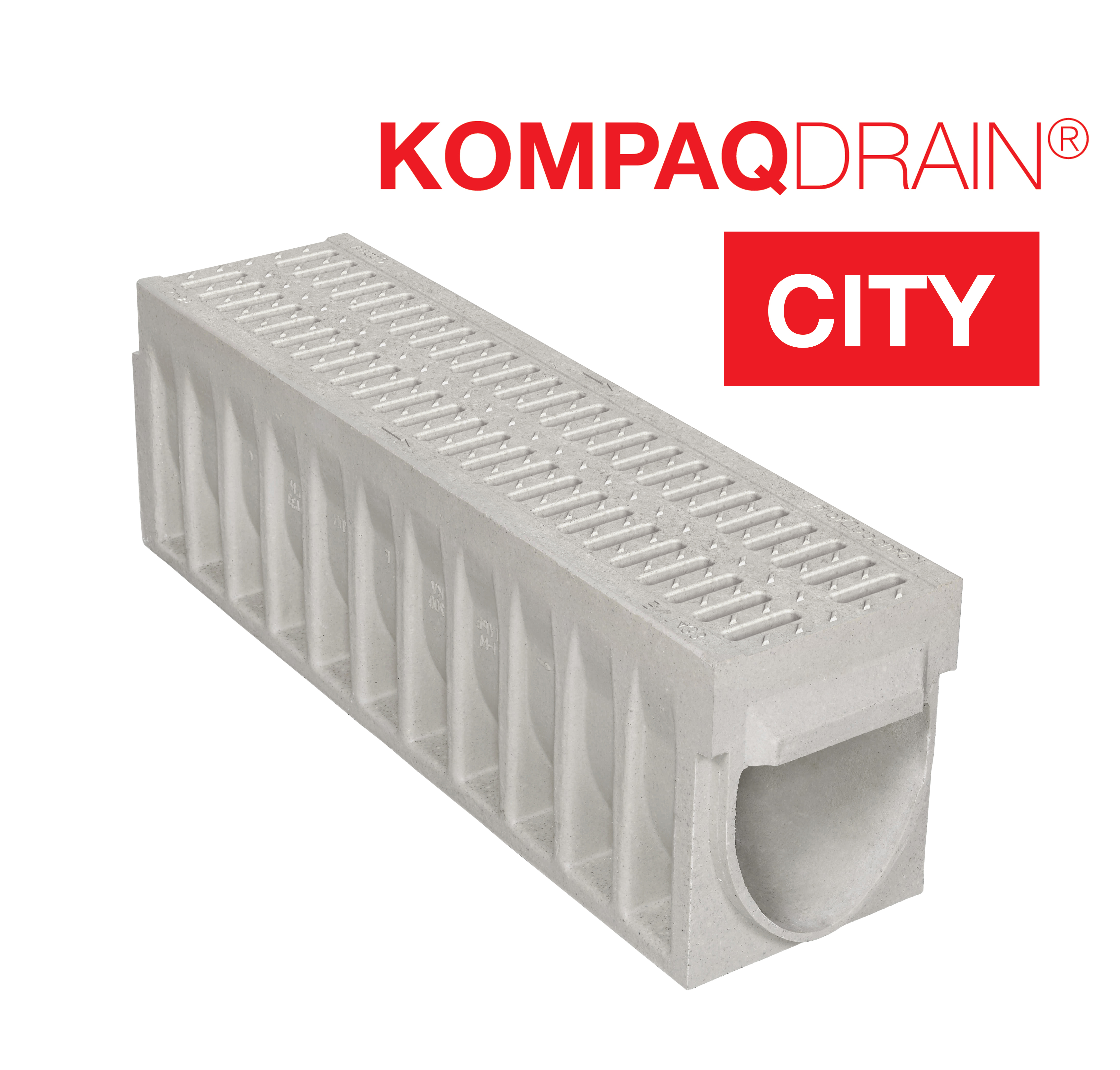The channel and grating of the KompaqDrain City model form a single monolithic system ensuring strength throughout the whole channel. As the grating forms part of this system and is not separate there are no risks of lifting or shifting, coupled with smaller collection holes thus preventing trips and falls!