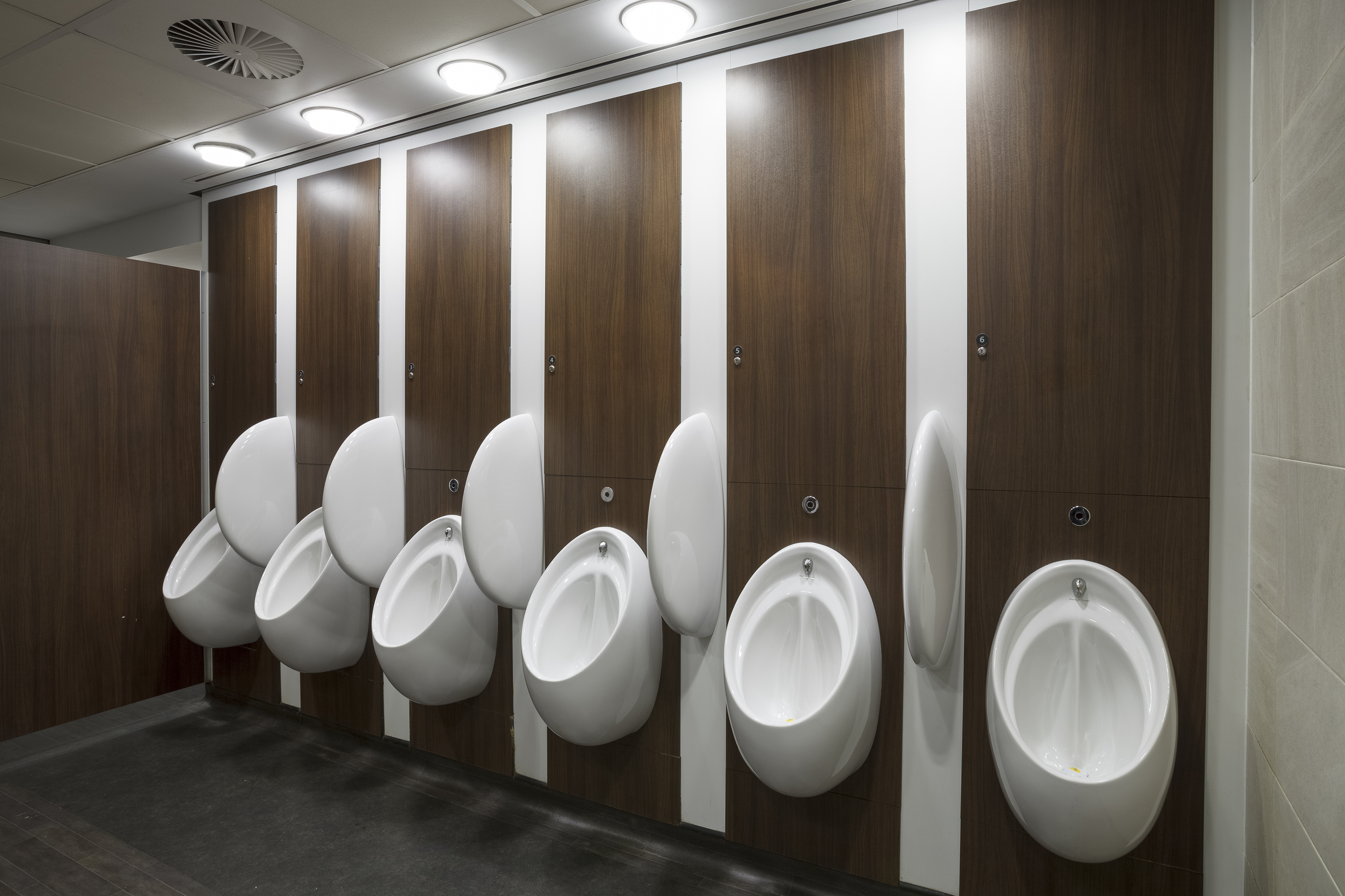 To accommodate this, Venesta’s Equinox cubicles were specified along with solid surface washtroughs and Solid Grade Laminate (SGL) urinal duct panels.