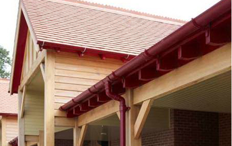 Alumascs Heritage cast-aluminium rainwater system was chosen for the new public facilities building, to replicate the original cast iron systems used in the rest of the park. STP Construction installed a Heritage half round gutter system with Heritage circular downpipes in red to achieve the desired effect.