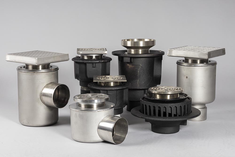 Vari-Level gully bodies are manufactured in cast iron, stainless steel and ABS plastic, with options for trapped or non-trapped designs, shallow or deep sumps, vertical or horizontal outlets and side inlets. Gratings and rodding eyes are available in materials including cast iron, stainless steel and nickel bronze, with specialist options such as sealed covers, security gratings and funnel designs.